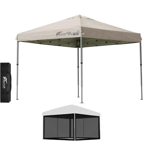 FIELDOOR ワンタッチタープテント 2.5m (標準:ライトベージュ/アルミ/4点脚ロック/バグガードスクリーン) 軽量 テント タープ ワンタッチテント ワンタッチタープ UV加工 撥水 ベンチレーション 収納バッグ付 日よけ キャンプ バーベキュー 送料無料