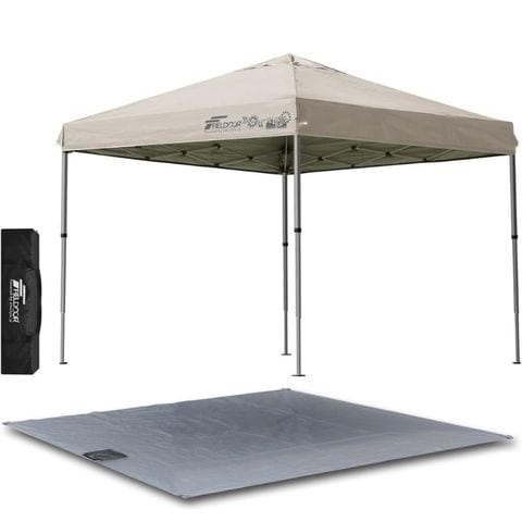 FIELDOOR ワンタッチタープテント 2.5m (標準:ライトベージュ/アルミ/4点脚ロック/専用グランドシート) 軽量 テント タープ ワンタッチテント ワンタッチタープ UV加工 撥水 ベンチレーション 収納バッグ付 日よけ キャンプ バーベキュー 送料無料