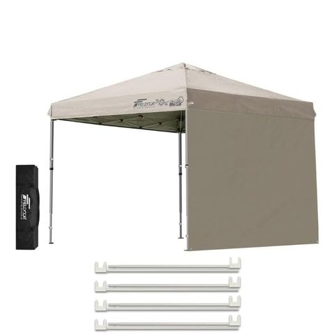 FIELDOOR ワンタッチタープテント 2.5m (標準:ライトベージュ/アルミ/4点脚ロック/フレーム強化サポート/サイドシート1枚付) 軽量 テント タープ ワンタッチテント ワンタッチタープ UV加工 撥水 ベンチレーション 収納バッグ付 日よけ キャンプ 送料無料