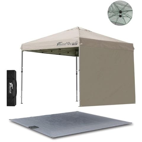 FIELDOOR ワンタッチタープテント 2.5m (標準:ライトベージュ/アルミ/強化版サイドフレーム/4点脚ロック/専用グランドシート/サイドシート1枚付) 軽量 テント タープテントタープ UV加工 撥水 ベンチレーション 収納バッグ付 日よけ キャンプ 送料無料
