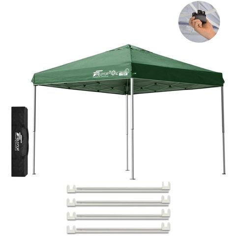 FIELDOOR ワンタッチタープテント 2.5m (標準:グリーン/スチール/センターロック/強化サポート) テント タープ ワンタッチ ワンタッチテント ワンタッチタープ UV加工 撥水 ベンチレーション 収納バッグ付 日よけ キャンプ バーベキュー 送料無料