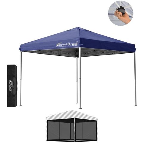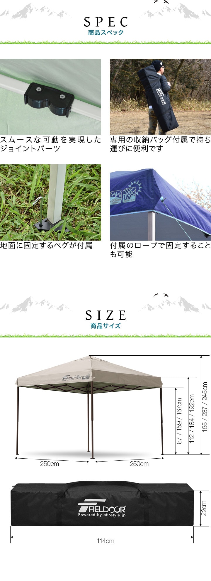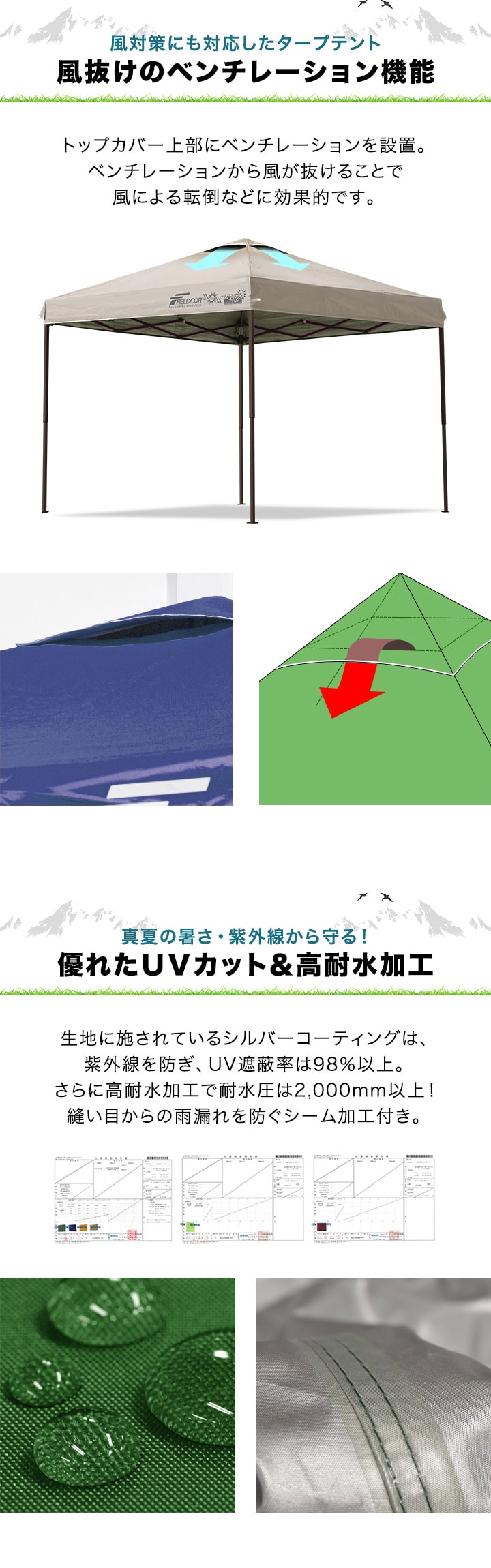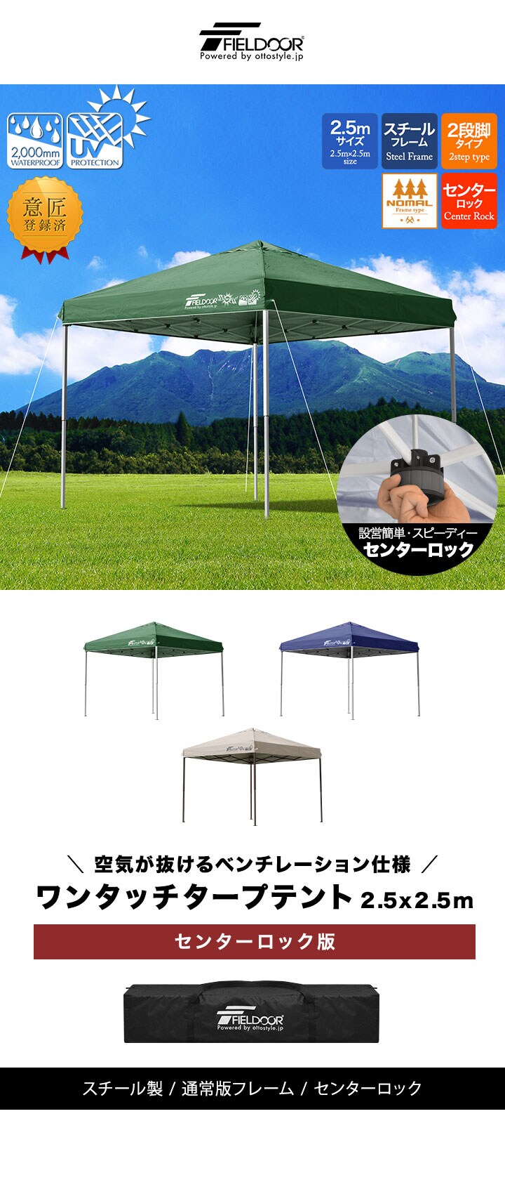 FIELDOOR ワンタッチタープテント 2.5m (標準:ブルー/スチール/センターロック/バグガード) テント タープ ワンタッチ ワンタッチテント ワンタッチタープ UV加工 撥水 ベンチレーション 収納バッグ付 日よけ キャンプ バーベキュー 送料無料