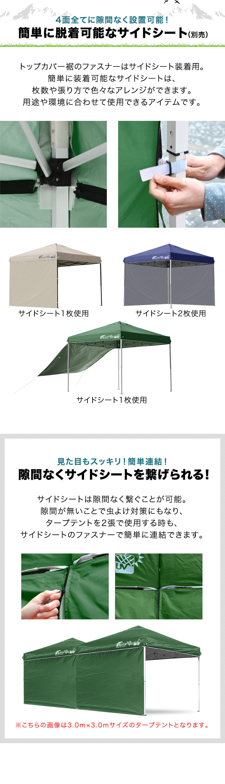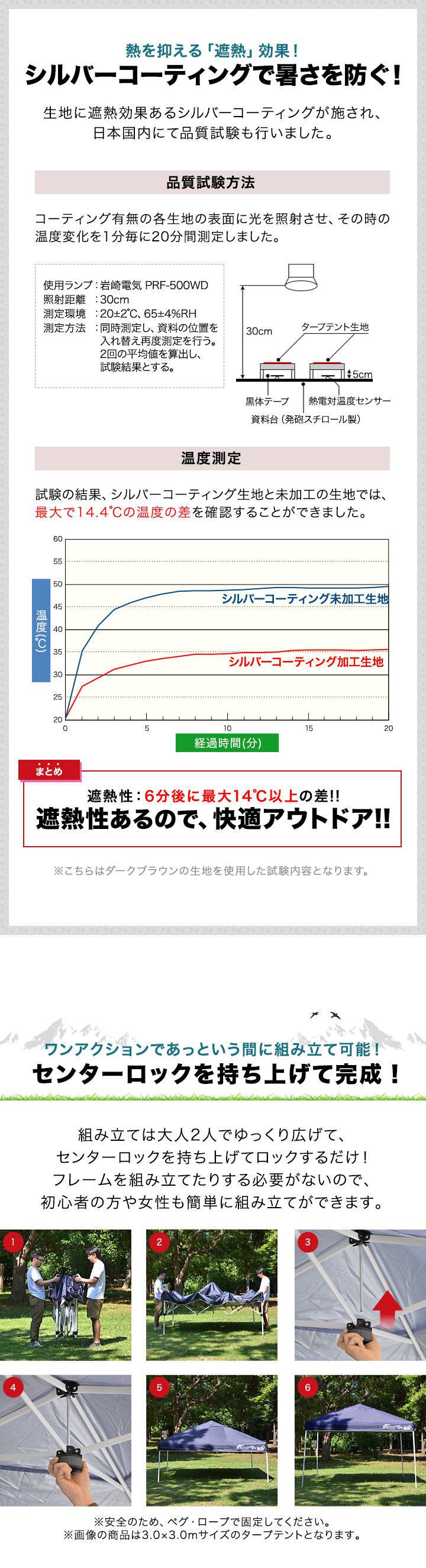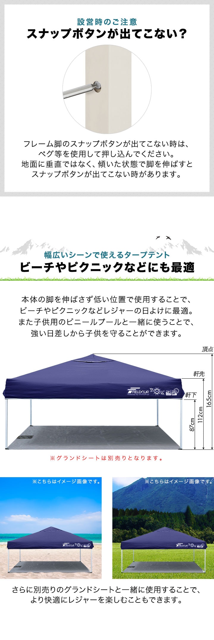 | 付属品: ・ロープ ・ペグ ・収納バッグ ・取扱説明書 |