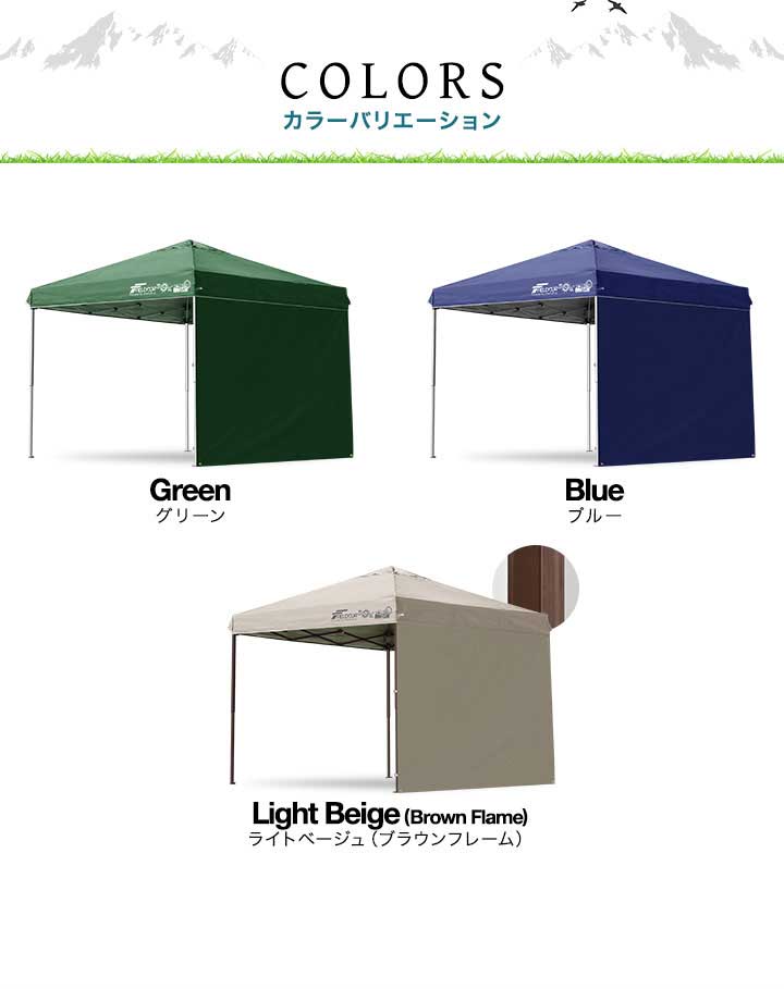 | 付属品: ・専用サイドシート(1枚) ・ロープ ・ペグ ・収納バッグ ・取扱説明書 |