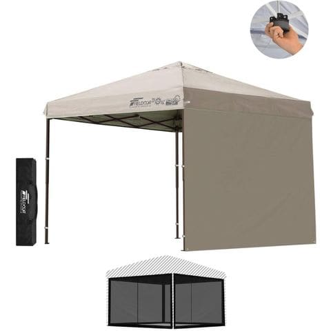 FIELDOOR ワンタッチタープテント 2.5m (標準:ライトベージュ/スチール/センターロック/バグガード/サイドシート1枚付) テント タープ ワンタッチ ワンタッチテント ワンタッチタープ UV加工 撥水 ベンチレーション 収納バッグ付 日よけ キャンプ バーベキュー 送料無料