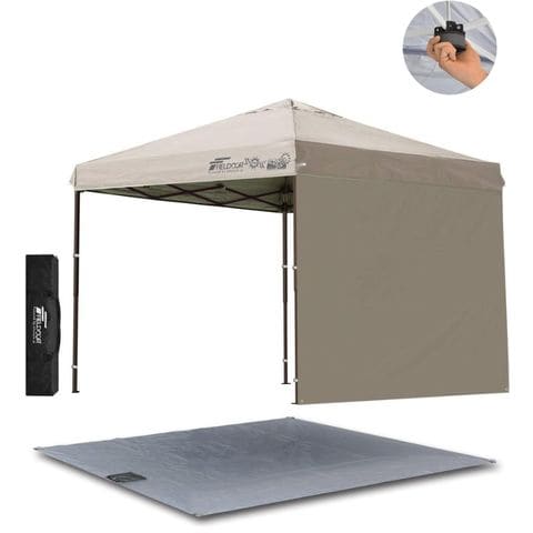 FIELDOOR ワンタッチタープテント 2.5m (標準:ライトベージュ/スチール/センターロック/グランドシート/サイドシート1枚付) テント タープ ワンタッチ ワンタッチテント ワンタッチタープ UV加工 撥水 ベンチレーション 収納バッグ付 日よけ キャンプ 送料無料
