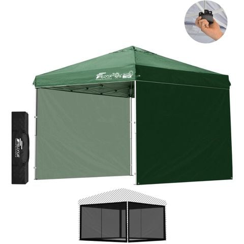 FIELDOOR ワンタッチタープテント 2.5m (標準:グリーン/スチール/センターロック/バグガード/サイドシート2枚付) テント タープ ワンタッチ ワンタッチテント ワンタッチタープ UV加工 撥水 ベンチレーション 収納バッグ付 日よけ キャンプ バーベキュー 送料無料