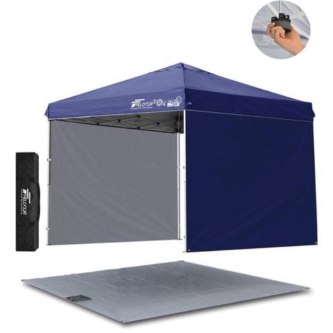FIELDOOR ワンタッチタープテント 2.5m (標準:ブルー/スチール/センターロック/グランドシート/サイドシート2枚付) テント タープ ワンタッチ ワンタッチテント ワンタッチタープ UV加工 撥水 ベンチレーション 収納バッグ付 日よけ キャンプ バーベキュー 送料無料
