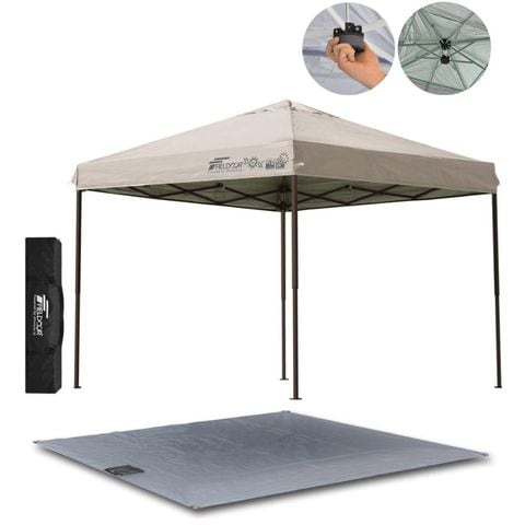 FIELDOOR ワンタッチタープテント 2.5m (標準:ライトベージュ/スチール/強化版サイドフレーム/センターロック/グランドシート) テント タープ ワンタッチ ワンタッチテント ワンタッチタープ UV加工 撥水 ベンチレーション 収納バッグ付 日よけ キャンプ 送料無料