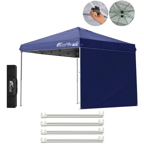 FIELDOOR ワンタッチタープテント 2.5m (標準:ブルー/スチール/強化版サイドフレーム/センターロック/強化サポート/サイドシート1枚付) テント タープ ワンタッチテント ワンタッチタープ UV加工 撥水 ベンチレーション 日よけ キャンプ 送料無料