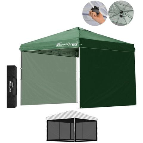 FIELDOOR ワンタッチタープテント 2.5m (標準:グリーン/スチール/強化版サイドフレーム/センターロック/バグガード/サイドシート2枚付) テント タープ ワンタッチテント ワンタッチタープ UV加工 撥水 ベンチレーション 日よけ キャンプ 送料無料