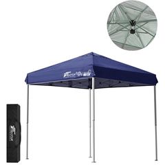 FIELDOOR ワンタッチタープテント 2m (標準:ブルー/スチール/4点脚ロック/強化サポート) テント タープ ワンタッチ ワンタッチテント ワンタッチタープ UV加工 撥水 ベンチレーション 収納バッグ付 日よけ キャンプ バーベキュー 送料無料
