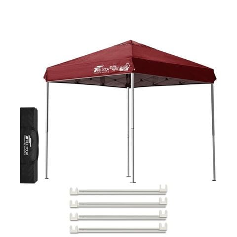 FIELDOOR ワンタッチタープテント 2m (標準:ボルドー/スチール/4点脚ロック/強化サポート) テント タープ ワンタッチ ワンタッチテント ワンタッチタープ UV加工 撥水 ベンチレーション 収納バッグ付 日よけ キャンプ バーベキュー 送料無料