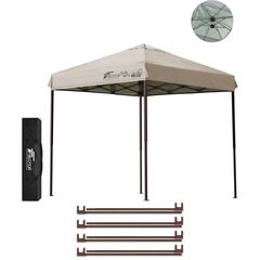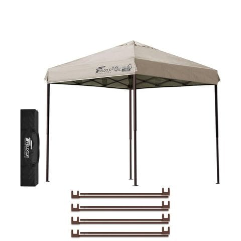 FIELDOOR ワンタッチタープテント 2m (標準:ライトベージュ/スチール/4点脚ロック/強化サポート) テント タープ ワンタッチ ワンタッチテント ワンタッチタープ UV加工 撥水 ベンチレーション 収納バッグ付 日よけ キャンプ バーベキュー 送料無料