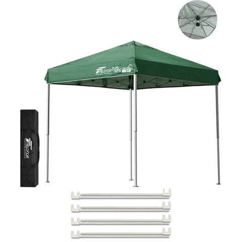 FIELDOOR ワンタッチタープテント 2m (標準:グリーン/スチール/強化版サイドフレーム/4点脚ロック/強化サポート) テント タープ ワンタッチ ワンタッチテント ワンタッチタープ UV加工 撥水 ベンチレーション 収納バッグ付 日よけ キャンプ 送料無料