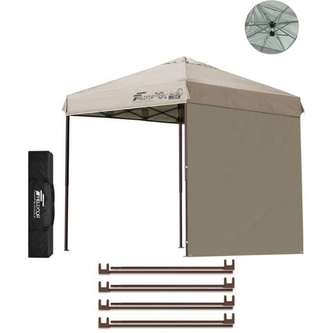 FIELDOOR ワンタッチタープテント 2m (標準:ライトベージュ/スチール/強化版サイドフレーム/4点脚ロック/強化サポート/サイドシート1枚付) テント タープ ワンタッチテント ワンタッチタープ UV加工 撥水 ベンチレーション 日よけ キャンプ 送料無料
