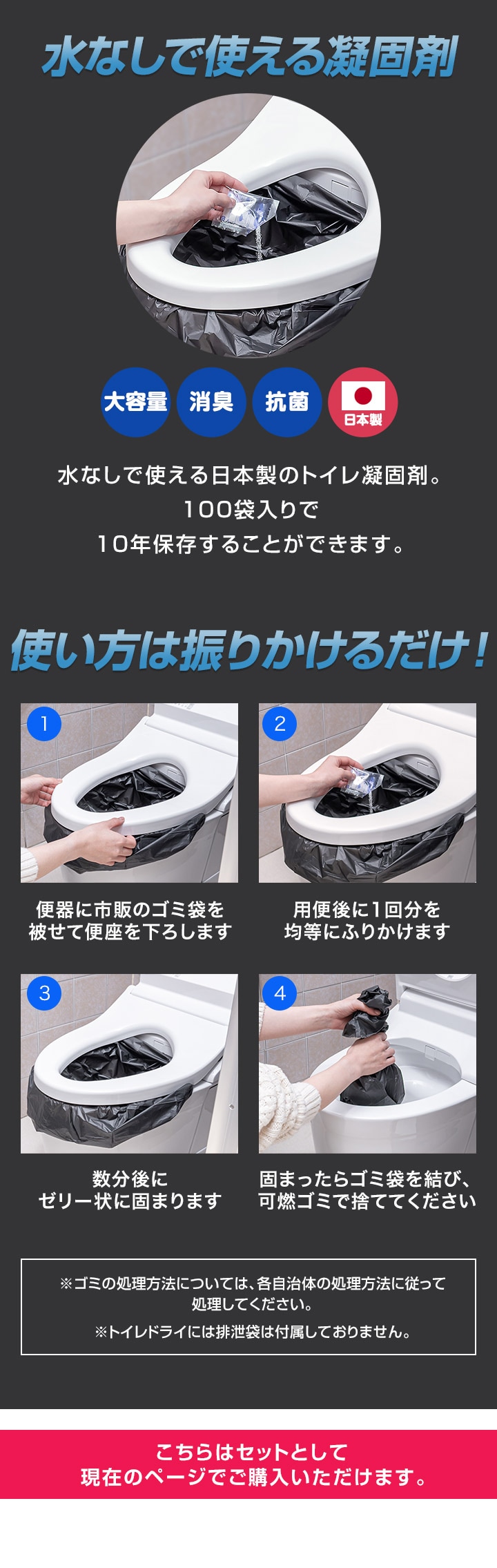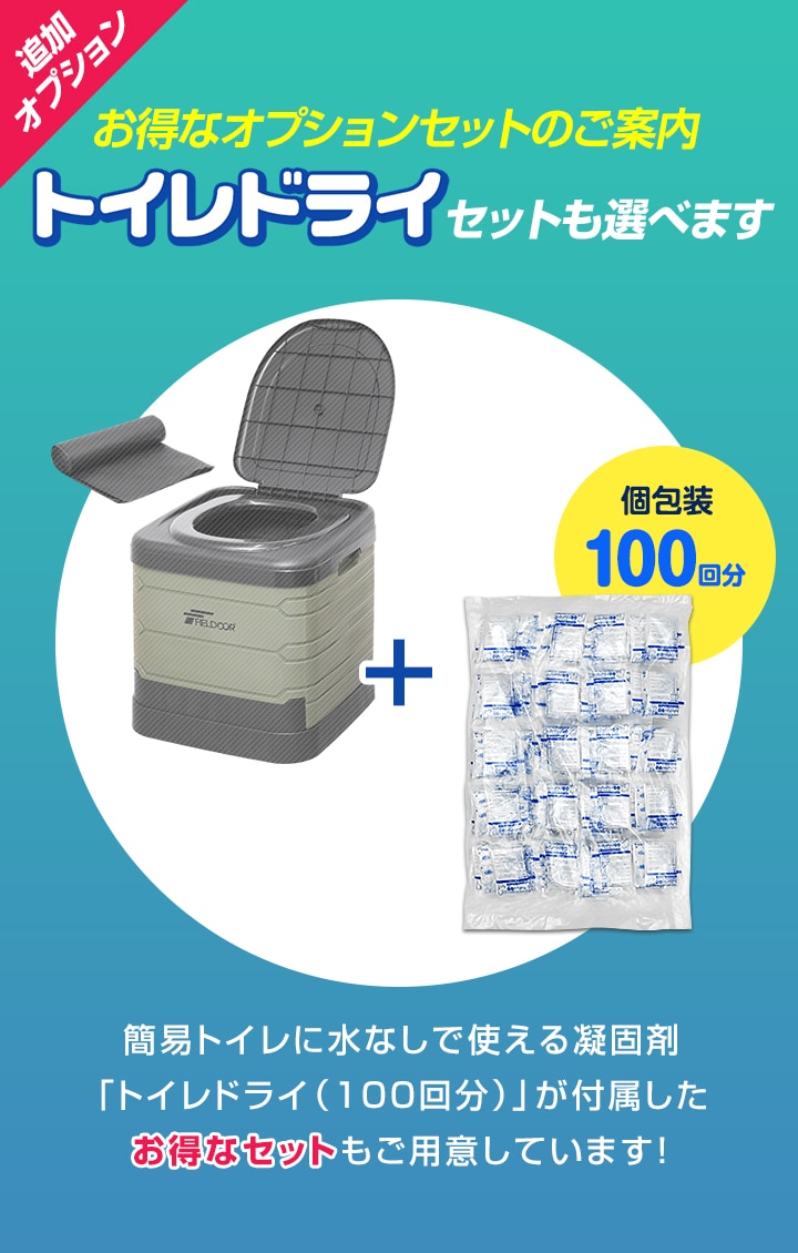 FIELDOOR 簡易トイレ 災害用 (Lサイズ/トイレ本体&凝固剤100回分付属セット) 非常用 トイレ 大きい 折りたたみ ポータブルトイレ 排泄袋つき 携帯トイレ 防災 災害用トイレ 防災グッズ 防災用品 災害対策 停電 断水 防災士監修 介護 アウトドア 送料無料