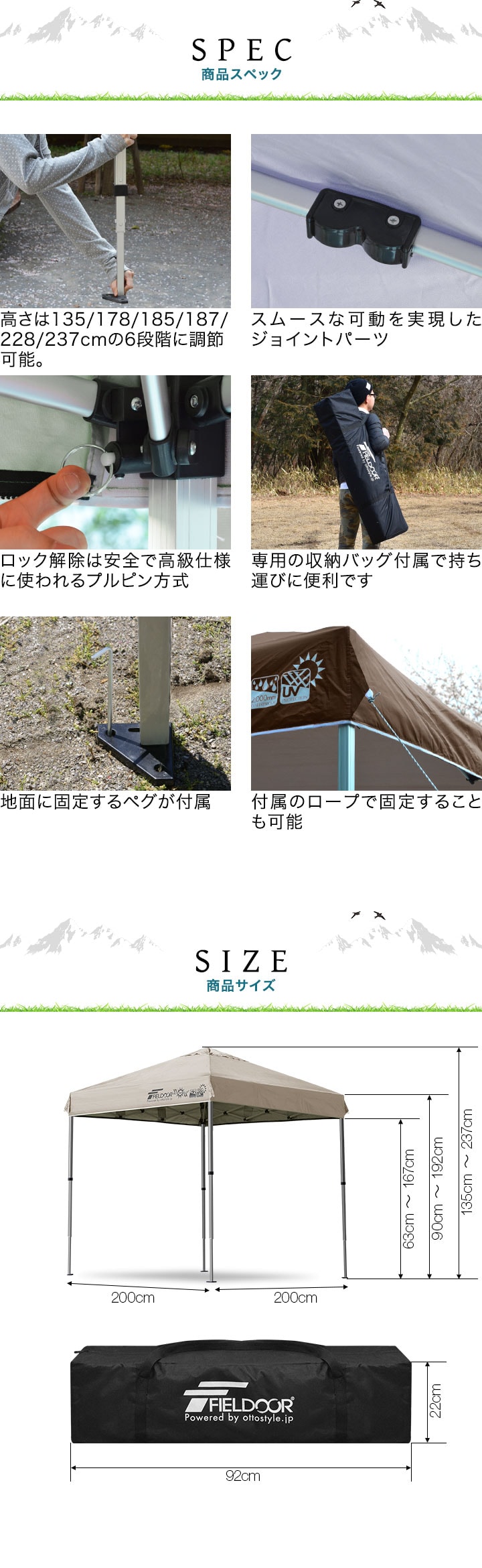 タープ タープテント ワンタッチタープ(簡易式) ワンタッチタープテント ワンタッチテント 簡易タープ 簡単タープ 組立て式 折りたたみ 折り畳み 拡張 頑丈 高耐久 日よけ 日除け 紫外線 UVカット 紫外線対策 遮光 耐水 二人用 三人用 四人用 2人用 3人用 4人用 2名用 3名用 4名用 2人 3人 4人 天幕 タープテント セット タープ 大型 ベンチレーション 風に強い アウトドア アウトドア用品 ファミリーキャンプ キャンプ キャンプ用品 キャンプ道具 Fieldoor フィールドア おしゃれ かんたん 初心者 ビギナー 道具 プライバシー 着替え 休憩 防災 災害時 避難 防災用品 アウトドアグッズ フィールドギア アクセサリー レジャー 山 海 ビーチ 海水浴 フリマ フリーマーケット 公園 フェス 屋外イベント バーベキュー BBQ 運動会 クラブ活動 部活動 お花見 キャンピング グランピング 防災 非常用