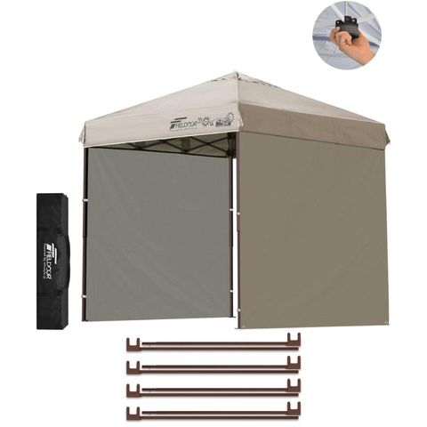 FIELDOOR ワンタッチタープテント 2m (標準:ライトベージュ/スチール/センターロック/強化サポート/サイドシート2枚付) テント タープ ワンタッチ ワンタッチテント ワンタッチタープ UV加工 撥水 ベンチレーション 収納バッグ付 日よけ キャンプ バーベキュー 送料無料