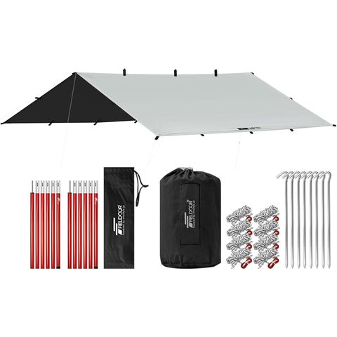 FIELDOOR スクエアタープ 2~4人用 (グレー:遮光高耐水/本体&6連結180cmポール2本セット) 2.8m×2.8m 遮熱 遮光 タープテント 日よけ UVカット 高耐水 ソロキャンプ テントポール サンシェード ヘキサタープ 正方形 アウトドア BBQ キャンプ 送料無料のレビュー