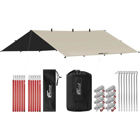 FIELDOOR スクエアタープ 2~4人用 (ライトベージュ:遮光高耐水/本体&6連結180cmポール2本セット) 2.8m×2.8m 遮熱 遮光 タープテント 日よけ UVカット 高耐水 ソロキャンプ テントポール サンシェード ヘキサタープ アウトドア BBQ キャンプ 送料無料のレビュー