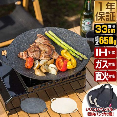 | 特記事項: ※直火・ガス・IH・電気調理器など様々な熱源で使用可能。 ※シーズニングは必要ありません。 ※食洗器には対応しておりません。 ※家庭用カセットコンロでご使用される場合、グリドルパンがカセットコンロ本体を覆ってしまうと輻射熱がガスボンベを発熱させる恐れがありますので、熱したグリドルパンまたはハンドルをガスボンベに触れない、近づけないよう、十分に注意して下さい。 ※収納袋の内側にはPVC(ポリ塩化ビニール)コーティングを施しています。PVC(ポリ塩化ビニール)コーティングには臭いが有り、開封直後は人によって過敏に感じやすい場合もございます。どうしても気になる場合などは、屋外など直射日光の当たらない風通しの良い場所で、1~2日程度吊るしていただくと臭いが軽減します。 |
