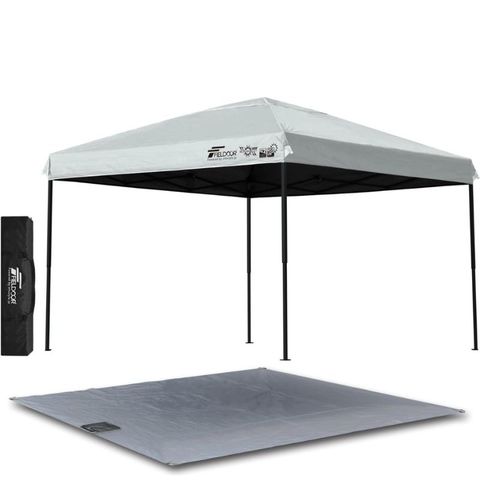 FIELDOOR ワンタッチタープテント 3m (遮光遮熱PU:グレー/スチール/4点脚ロック/グランドシート) テント タープ ワンタッチ ワンタッチテント ワンタッチタープ UV加工 撥水 ベンチレーション 収納バッグ付 日よけ キャンプ バーベキュー 送料無料