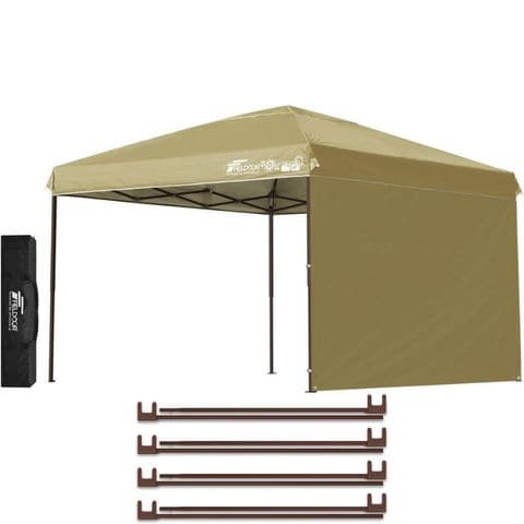 FIELDOOR ワンタッチタープテント 3m (標準:サンド/スチール/4点脚ロック/強化サポート/サイドシート1枚付) テント タープ ワンタッチ ワンタッチテント ワンタッチタープ UV加工 撥水 ベンチレーション 収納バッグ付 日よけ キャンプ バーベキュー 送料無料