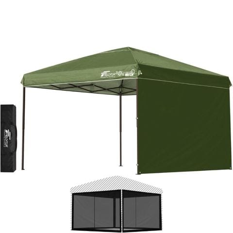 FIELDOOR ワンタッチタープテント 3m (標準:カーキ/スチール/4点脚ロック/バグガード/サイドシート1枚付) テント タープ ワンタッチ ワンタッチテント ワンタッチタープ UV加工 撥水 ベンチレーション 収納バッグ付 日よけ キャンプ バーベキュー 送料無料のレビュー