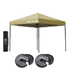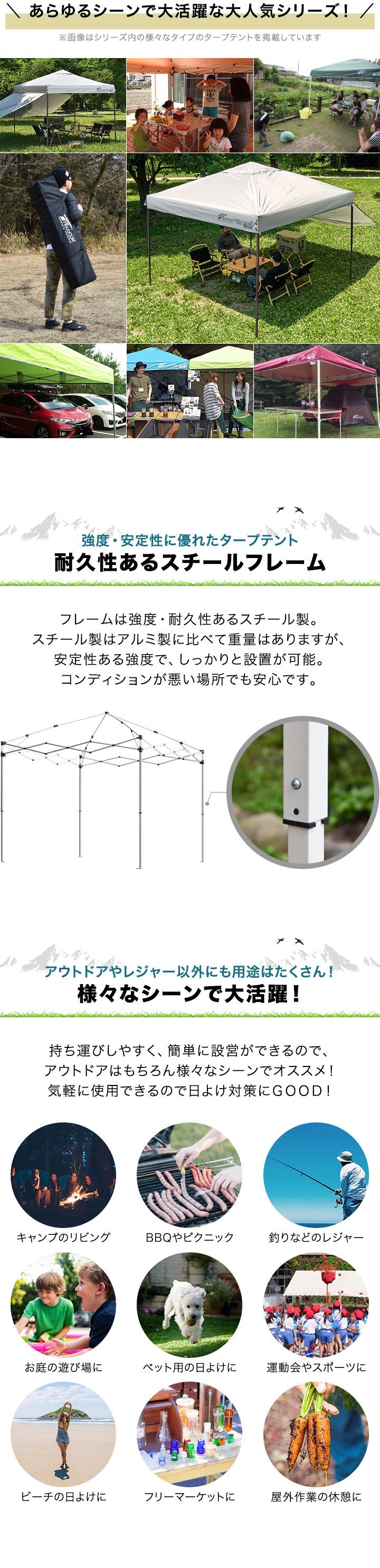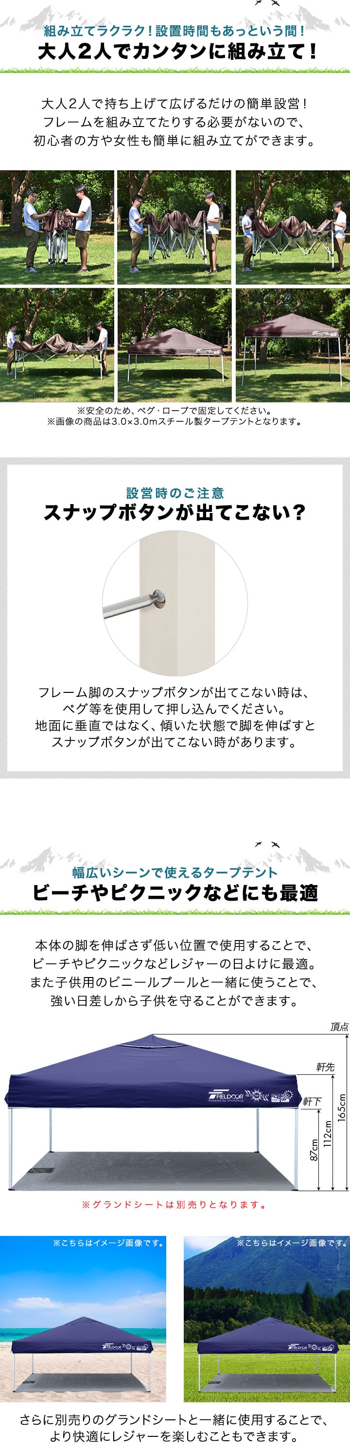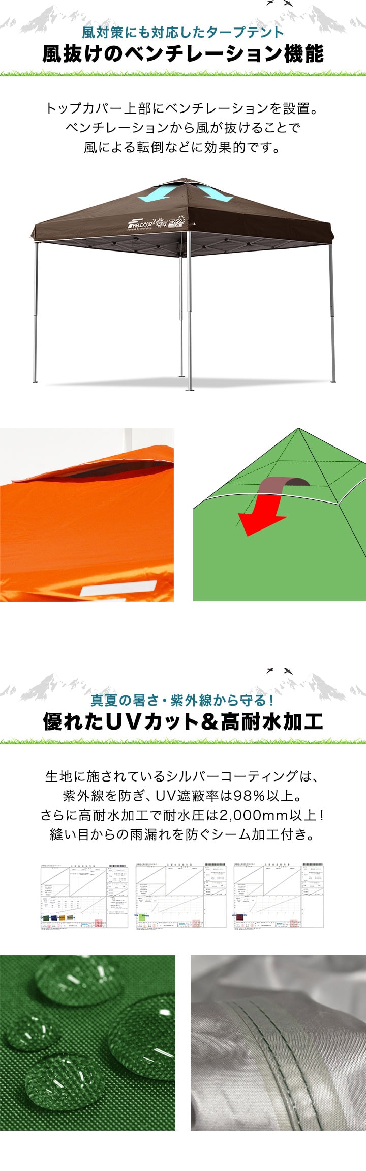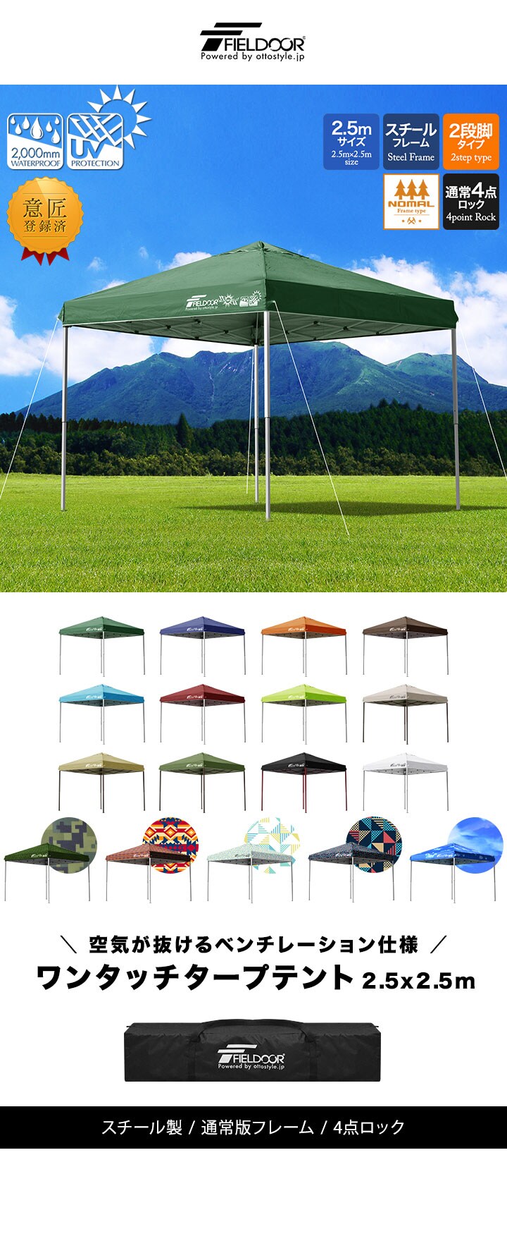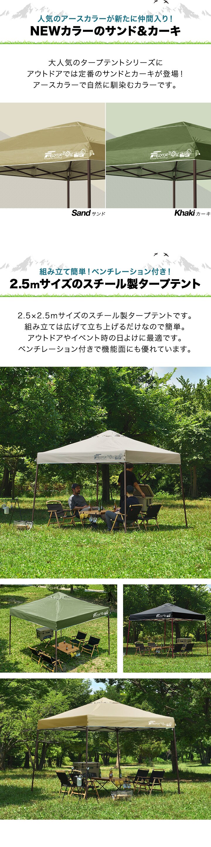 FIELDOOR ワンタッチタープテント 2.5m (標準:サンド/スチール/4点脚ロック/強化サポート) テント タープ ワンタッチ ワンタッチテント ワンタッチタープ UV加工 撥水 ベンチレーション 収納バッグ付 日よけ キャンプ バーベキュー 送料無料