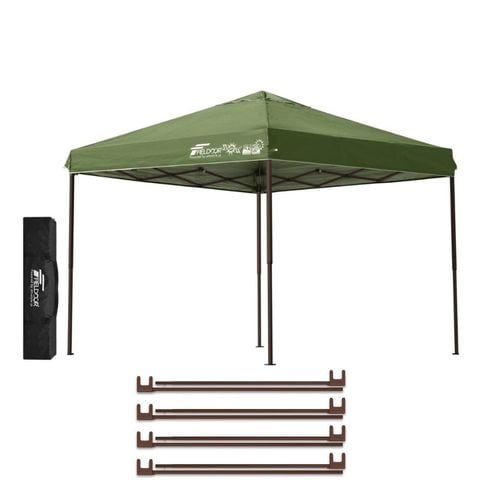 FIELDOOR ワンタッチタープテント 2.5m (標準:カーキ/スチール/4点脚ロック/強化サポート) テント タープ ワンタッチ ワンタッチテント ワンタッチタープ UV加工 撥水 ベンチレーション 収納バッグ付 日よけ キャンプ バーベキュー 送料無料