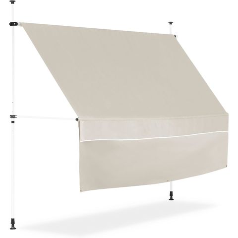日よけシェード 幅3m (標準:ライトベージュ/ホワイトフレーム/本体&前幕付セット) つっぱり式 巻き上げ オーニング UVカット 撥水 サンシェード 折りたたみ 目隠し 物干し つっぱり日よけスクリーン 突っ張り棒 日除け 雨よけ おしゃれ よしず すだれ シェード 送料無料