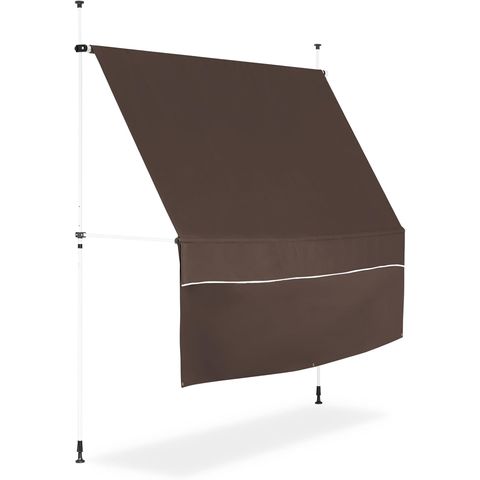 日よけシェード 幅2m (標準:ダークブラウン/ホワイトフレーム/本体&前幕付セット) つっぱり式 巻き上げ オーニング UVカット 撥水 サンシェード 折りたたみ 目隠し 物干し つっぱり日よけスクリーン 突っ張り棒 日除け 雨よけ おしゃれ よしず すだれ シェード 送料無料
