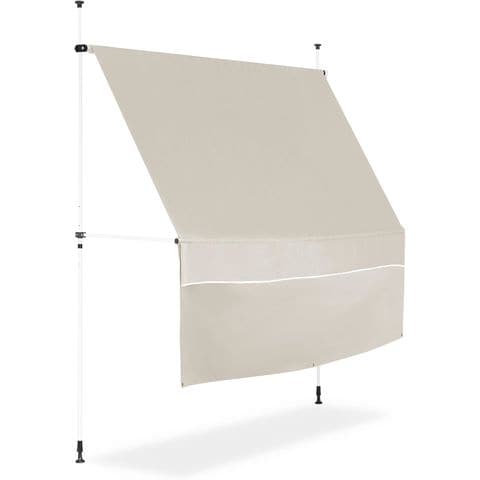 日よけシェード 幅2m (標準:ライトベージュ/ホワイトフレーム/本体&前幕付セット) つっぱり式 巻き上げ オーニング UVカット 撥水 サンシェード 折りたたみ 目隠し 物干し つっぱり日よけスクリーン 突っ張り棒 日除け 雨よけ おしゃれ よしず すだれ シェード 送料無料