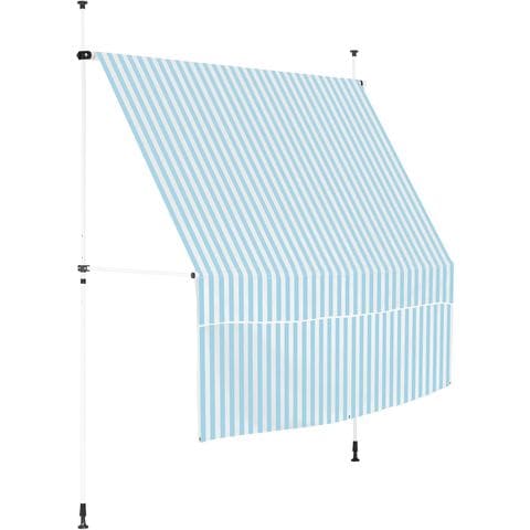 日よけシェード 幅2m (標準:ライトブルーストライプ/ホワイトフレーム/本体&前幕付セット) つっぱり式 巻き上げ オーニング UVカット 撥水 サンシェード 折りたたみ 目隠し 物干し つっぱり日よけスクリーン 突っ張り棒 日除け 雨よけ おしゃれ よしず すだれ シェード 送料無料