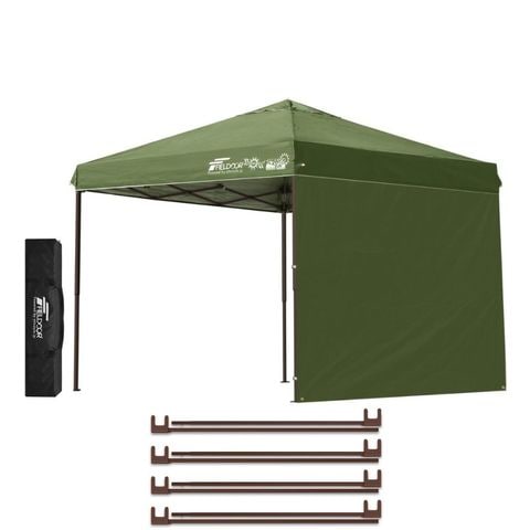 FIELDOOR ワンタッチタープテント 2.5m (標準:カーキ/スチール/4点脚ロック/強化サポート/サイドシート1枚付) テント タープ ワンタッチ ワンタッチテント ワンタッチタープ UV加工 撥水 ベンチレーション 収納バッグ付 日よけ キャンプ バーベキュー 送料無料