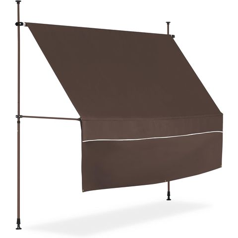 日よけシェード 幅3m (標準:ダークブラウン/ブラウンフレーム/本体&前幕付セット) つっぱり式 巻き上げ オーニング UVカット 撥水 サンシェード 折りたたみ 目隠し 物干し つっぱり日よけスクリーン 突っ張り棒 日除け 雨よけ おしゃれ よしず すだれ シェード 送料無料