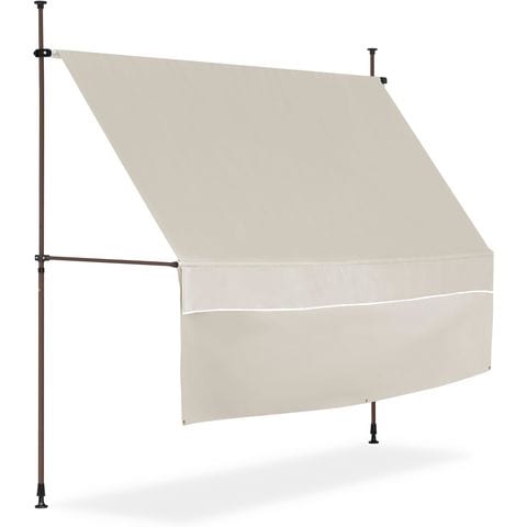 日よけシェード 幅3m (標準:ライトベージュ/ブラウンフレーム/本体&前幕付セット) つっぱり式 巻き上げ オーニング UVカット 撥水 サンシェード 折りたたみ 目隠し 物干し つっぱり日よけスクリーン 突っ張り棒 日除け 雨よけ おしゃれ よしず すだれ シェード 送料無料