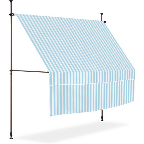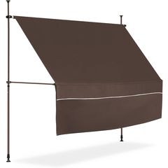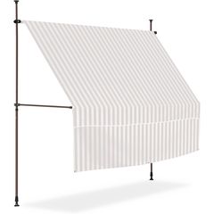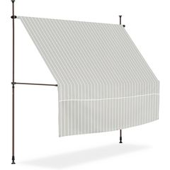 日よけシェード 幅3m (標準:ライトブルーストライプ/ブラウンフレーム/本体&前幕付セット) つっぱり式 巻き上げ オーニング UVカット 撥水 サンシェード 折りたたみ 目隠し 物干し つっぱり日よけスクリーン 突っ張り棒 日除け 雨よけ おしゃれ よしず すだれ シェード 送料無料