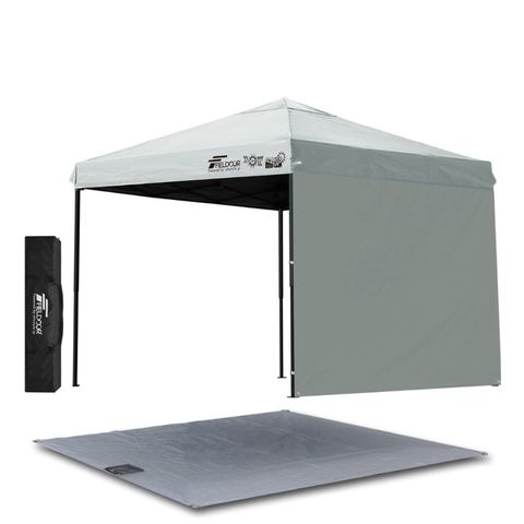 FIELDOOR ワンタッチタープテント 2.5m (遮光遮熱PU:グレー/スチール/4点脚ロック/グランドシート/サイドシート1枚付) テント タープ ワンタッチ ワンタッチテント ワンタッチタープ UV加工 撥水 ベンチレーション 収納バッグ付 日よけ キャンプ バーベキュー 送料無料
