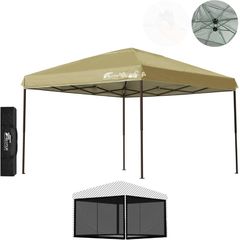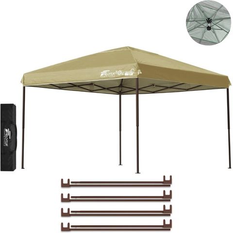 FIELDOOR ワンタッチタープテント 3m (標準:サンド/スチール/強化版サイドフレーム/4点脚ロック/強化サポート) テント タープ ワンタッチ ワンタッチテント ワンタッチタープ UV加工 撥水 ベンチレーション 収納バッグ付 日よけ キャンプ 送料無料