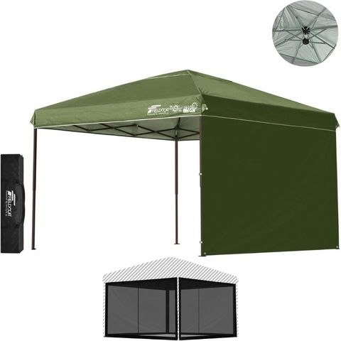 FIELDOOR ワンタッチタープテント 3m (標準:カーキ/スチール/強化版サイドフレーム/4点脚ロック/バグガード/サイドシート1枚付) テント タープ ワンタッチテント ワンタッチタープ UV加工 撥水 ベンチレーション 日よけ キャンプ 送料無料