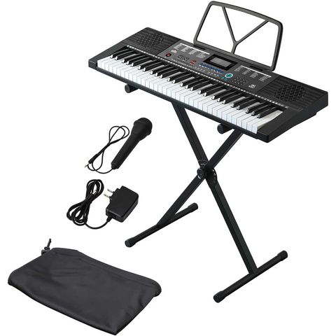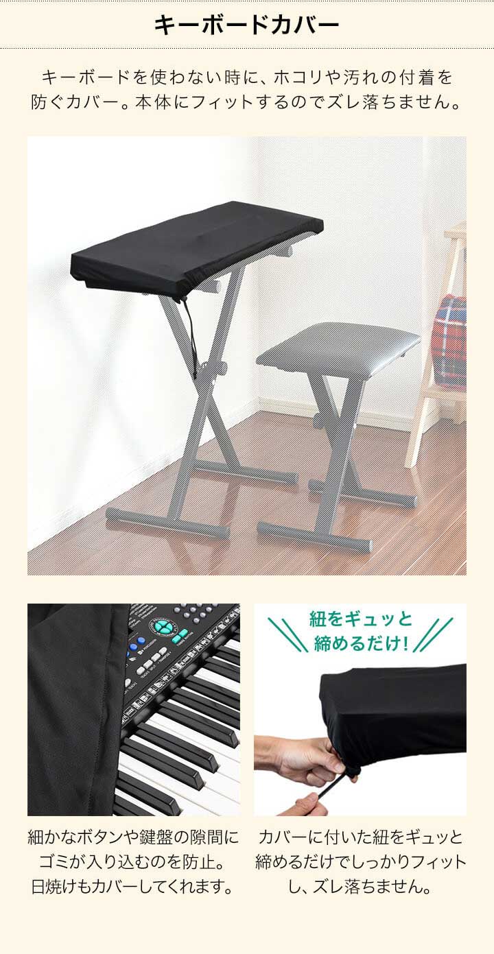 RiZKiZ 電子キーボード 61鍵盤 (A/カバー&B/スタンド付きセット) 電子ピアノ シンセサイザー AC/乾電池駆動 持ち運び 楽器 練習 初心者 入門用 練習モード レッスン 音楽 演奏 子供 61鍵盤電子キーボード マイク付き 送料無料