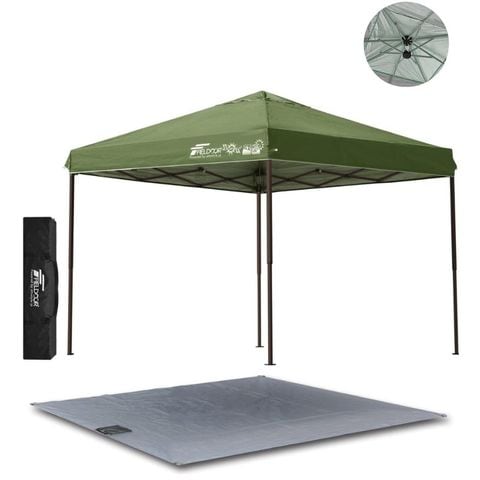 FIELDOOR ワンタッチタープテント 2.5m (標準:カーキ/スチール/強化版サイドフレーム/4点脚ロック/グランドシート) テント タープ ワンタッチ ワンタッチテント ワンタッチタープ UV加工 撥水 ベンチレーション 収納バッグ付 日よけ キャンプ 送料無料