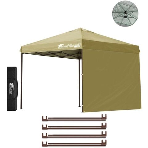 FIELDOOR ワンタッチタープテント 2.5m (標準:サンド/スチール/強化版サイドフレーム/4点脚ロック/強化サポート/サイドシート1枚付) テント タープ ワンタッチテント ワンタッチタープ UV加工 撥水 ベンチレーション 日よけ キャンプ 送料無料