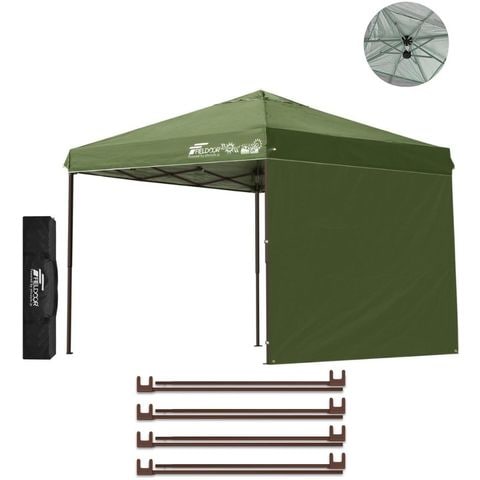 FIELDOOR ワンタッチタープテント 2.5m (標準:カーキ/スチール/強化版サイドフレーム/4点脚ロック/強化サポート/サイドシート1枚付) テント タープ ワンタッチテント ワンタッチタープ UV加工 撥水 ベンチレーション 日よけ キャンプ 送料無料