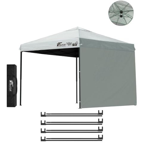 FIELDOOR ワンタッチタープテント 2.5m (遮光遮熱PU:グレー/スチール/強化版サイドフレーム/4点脚ロック/強化サポート/サイドシート1枚付) テント タープ ワンタッチテント ワンタッチタープ UV加工 撥水 ベンチレーション 日よけ キャンプ 送料無料