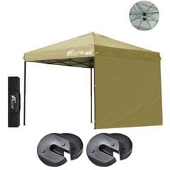 FIELDOOR ワンタッチタープテント 2.5m (標準:サンド/スチール/強化版サイドフレーム/4点脚ロック/バグガード/サイドシート1枚付) テント タープ ワンタッチテント ワンタッチタープ UV加工 撥水 ベンチレーション 日よけ キャンプ 送料無料