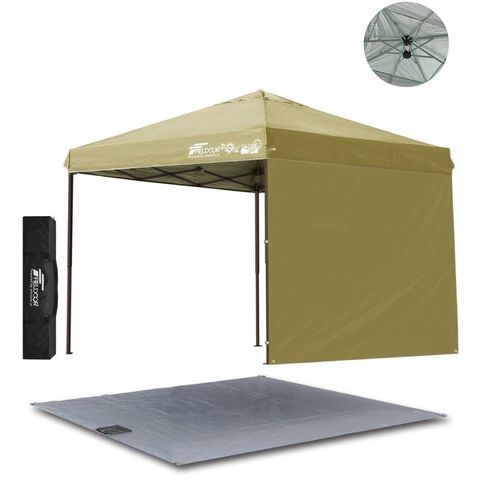 FIELDOOR ワンタッチタープテント 2.5m (標準:サンド/スチール/強化版サイドフレーム/4点脚ロック/グランドシート/サイドシート1枚付) テント タープ ワンタッチテント ワンタッチタープ UV加工 撥水 ベンチレーション 日よけ キャンプ 送料無料