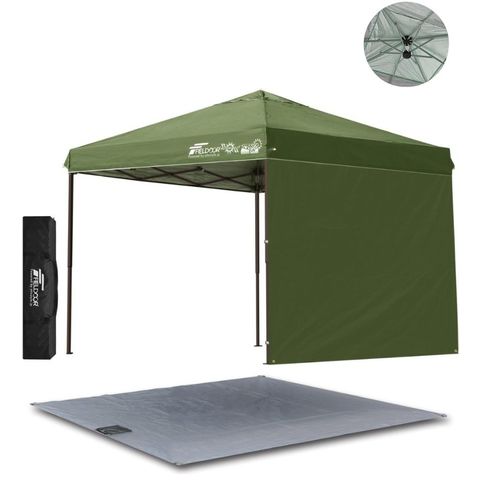 FIELDOOR ワンタッチタープテント 2.5m (標準:カーキ/スチール/強化版サイドフレーム/4点脚ロック/グランドシート/サイドシート1枚付) テント タープ ワンタッチテント ワンタッチタープ UV加工 撥水 ベンチレーション 日よけ キャンプ 送料無料